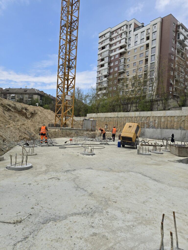 Виконано фундамент під баштовий кран і змонтовано кореневу секцію крана для будинку № 6.